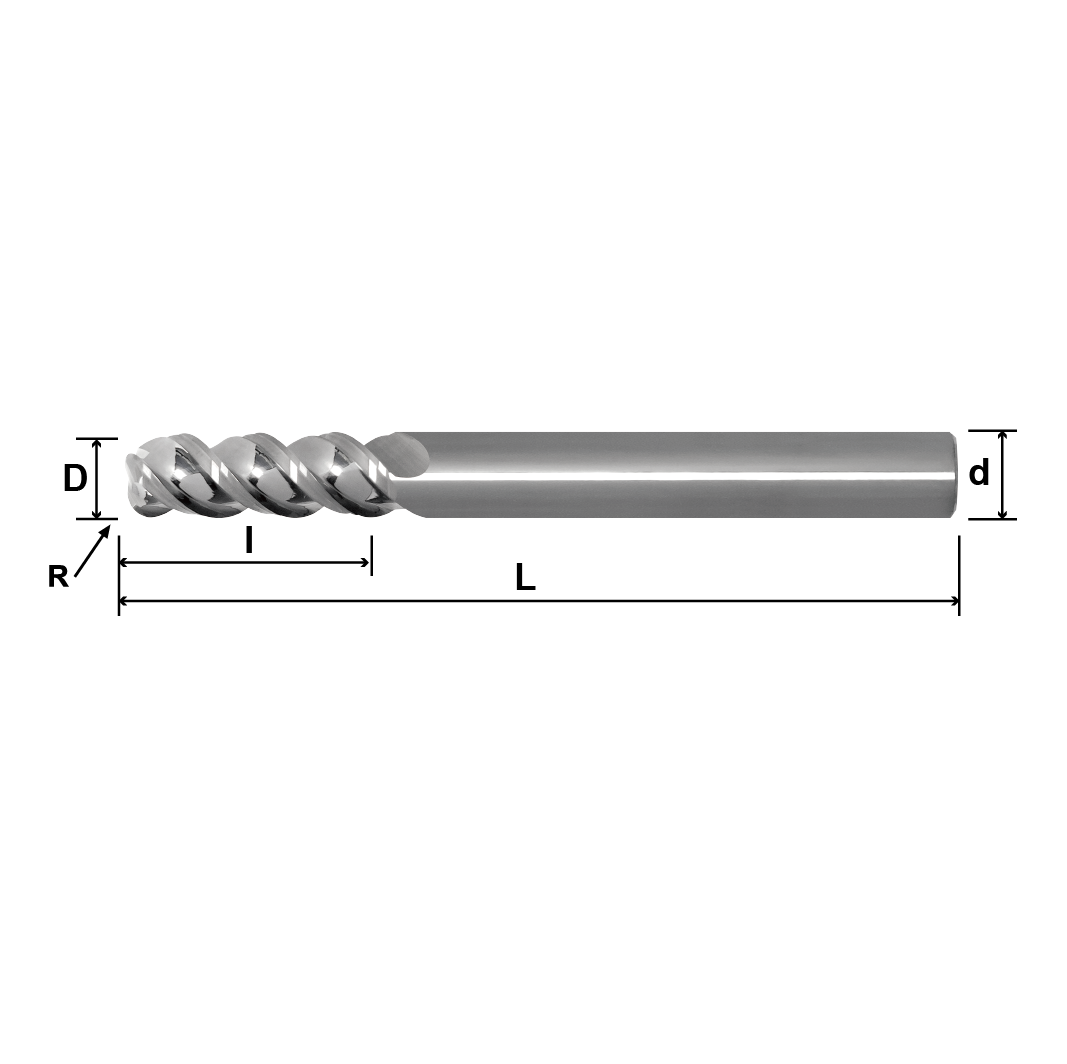 2 AR (Corner Radius, For Aluminum Alloy),3 Flutes